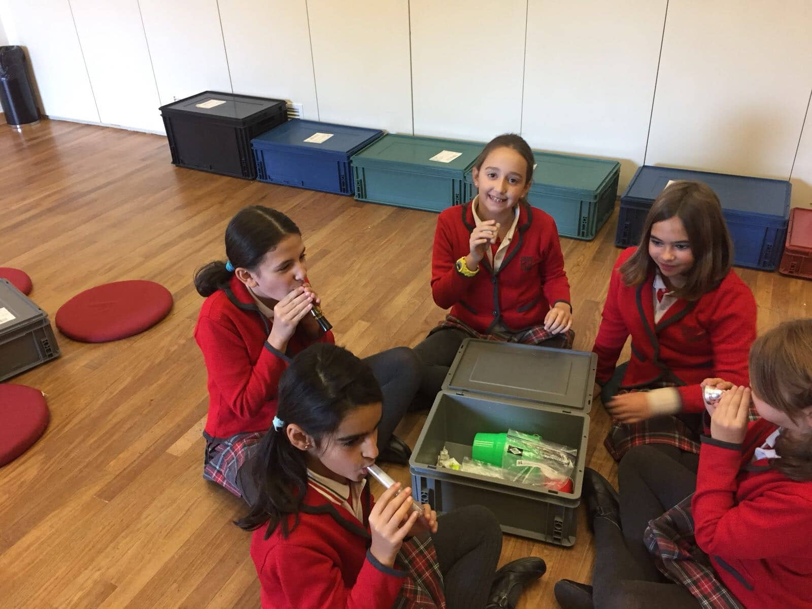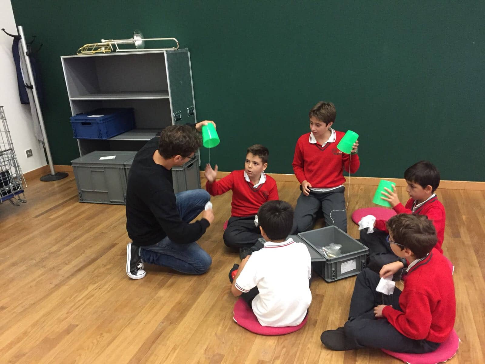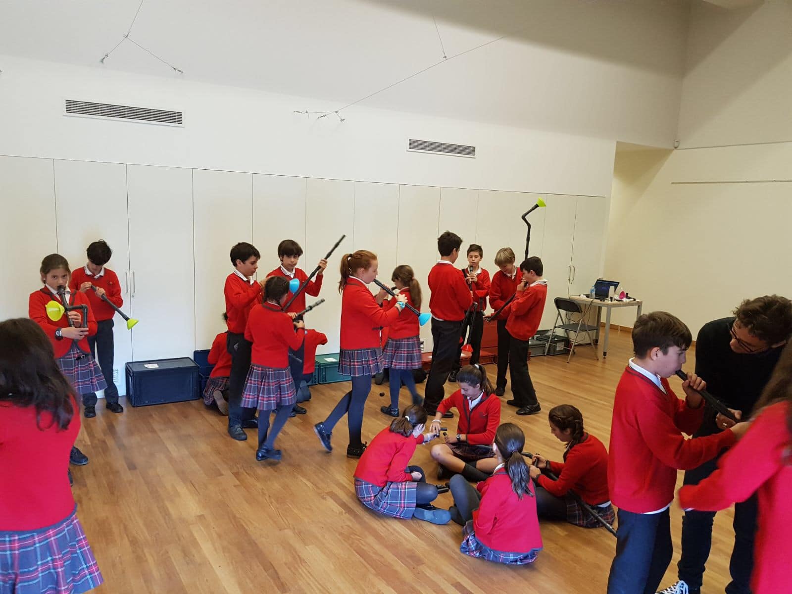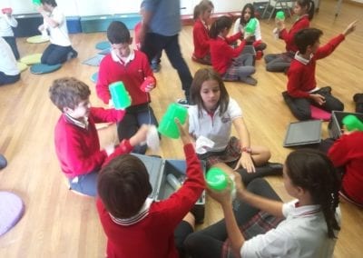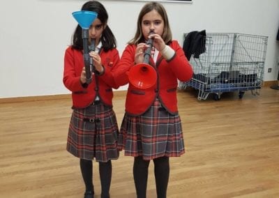 Los alumnos de 5º y 6º de primaria han asistido al taller “Notas de Ciencia” en el  edificio de CaixaForum Madrid. El propósito de la actividad era mirar la música desde un punto de vista poco habitual, el de la ciencia. Realizaron experimentos combinados con ejemplos musicales que servían de hilo conductor para acercarse a conceptos como la onda sonora, la propagación y la producción del sonido, el timbre, la frecuencia… Todo ello con el objetivo de conocer todos los secretos de los instrumentos de viento, incluso ¡ construir alguno!.