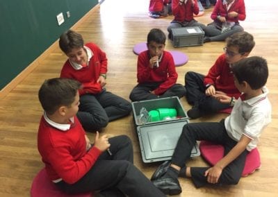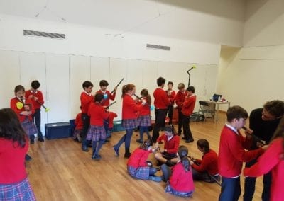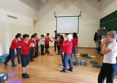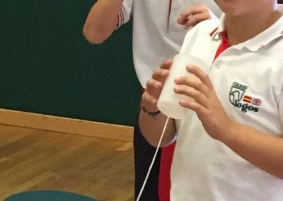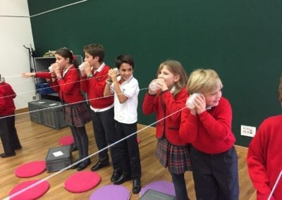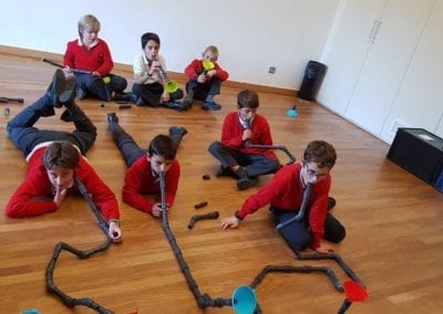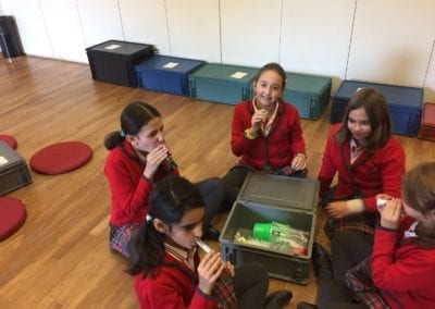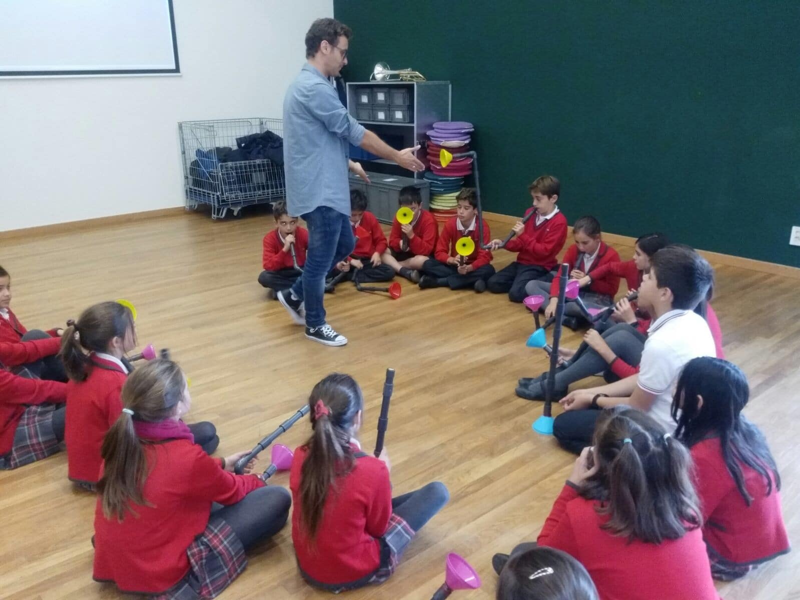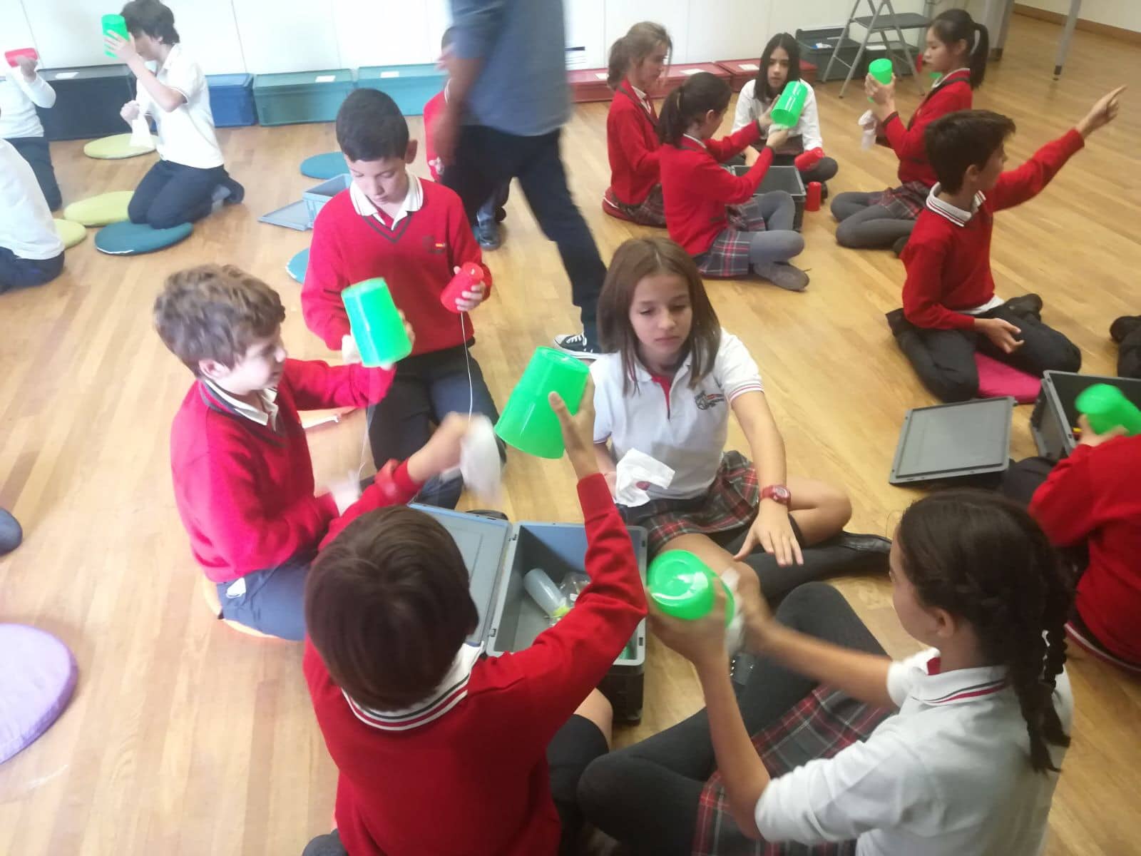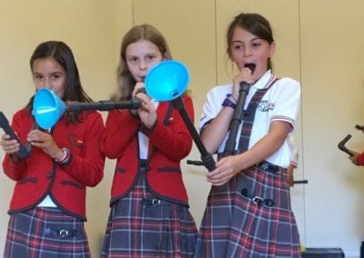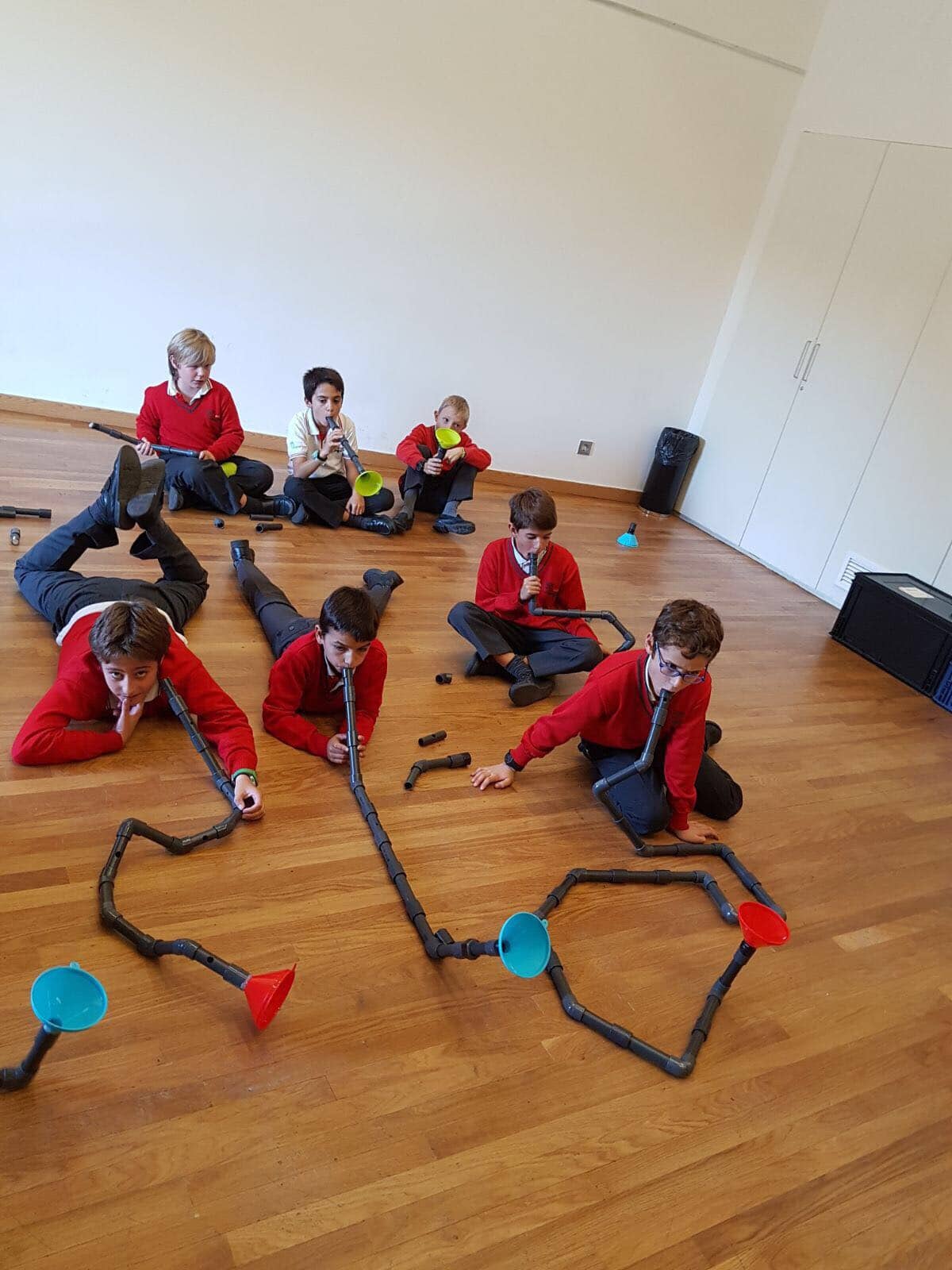 Los alumnos de 5º y 6º de primaria han asistido al taller “Notas de Ciencia” en el  edificio de CaixaForum Madrid. El propósito de la actividad era mirar la música desde un punto de vista poco habitual, el de la ciencia. Realizaron experimentos combinados con ejemplos musicales que servían de hilo conductor para acercarse a conceptos como la onda sonora, la propagación y la producción del sonido, el timbre, la frecuencia… Todo ello con el objetivo de conocer todos los secretos de los instrumentos de viento, incluso ¡ construir alguno!.